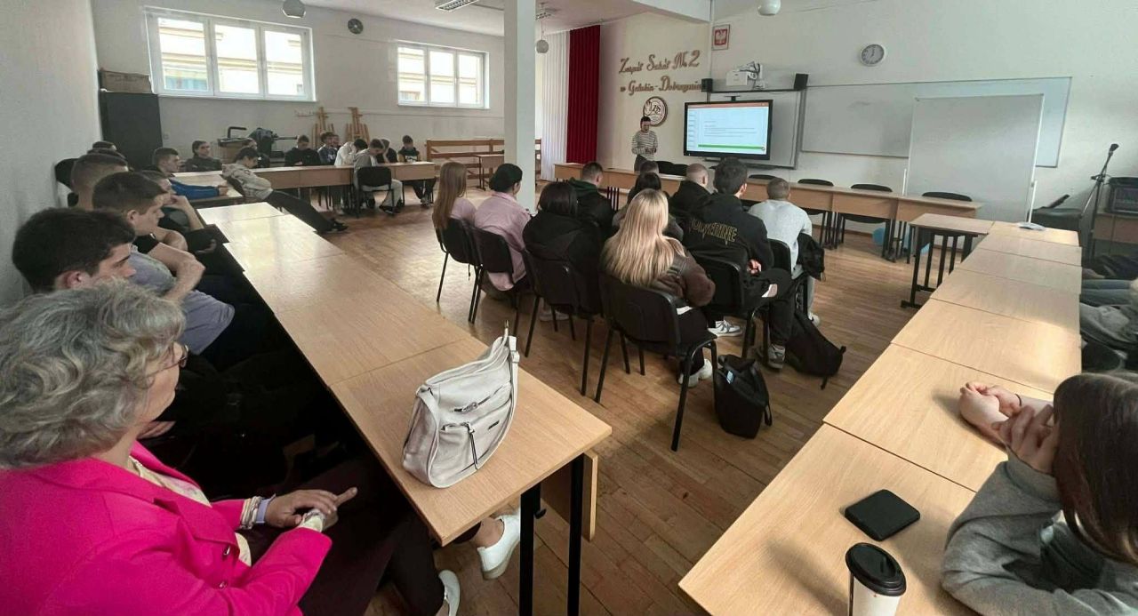 W ramach wieloletniej współpracy Powiatowego Urzędu Pracy z Zespołem szkół nr 2 w Golubiu –Dobrzyniu, 13 kwietnia odbyło się spotkanie doradców zawodowych Pań Agnieszki Słapińskiej i Iwony Stolarskiej z uczniami klas 3 Branżowej szkoły I stopnia . Tematem spotkania było świadome planowanie kariery, wejścia młodzieży na rynek pracy. Na spotkaniu panie zaprezentowały lokalny rynek pracy oraz opowiedziały jakiej pomocy udziela Urząd Pracy np. staże, kursy, szkolenia.