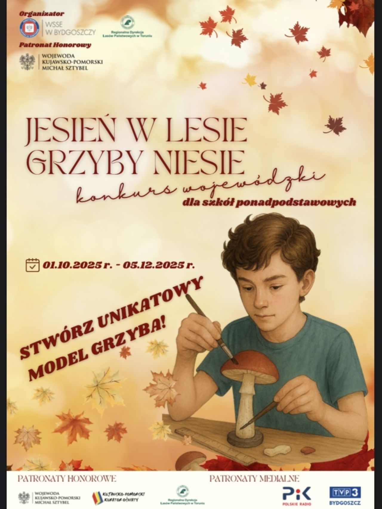 Państwowy Powiatowy Inspektor Sanitarny w Golubiu - Dobrzyniu serdecznie zaprasza uczniów do wzięcia udziału w konkursie " Jesień w lesie grzyby niesie".