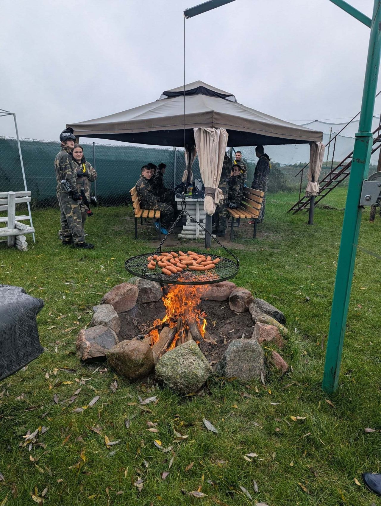 Po kilku rundach intensycznych zmagań przyszedł czas na odpoczynek przy ognisku i wspólne pieczenie kiełbasek. Nie zabrakło rozmów, żartów i wymiany wrażeń z gry.